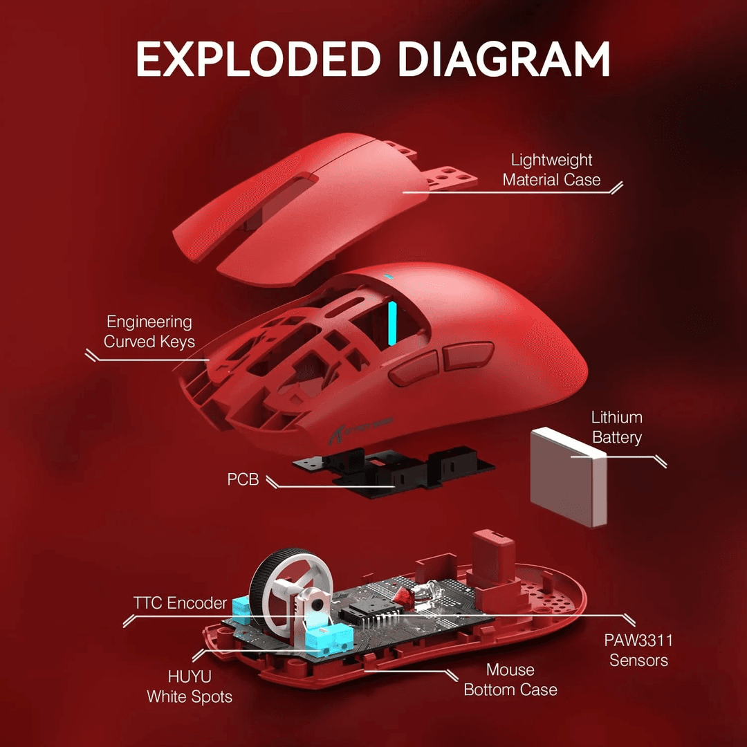 D’une part, la ATTACK SHARK X11 RED allie esthétique minimaliste et ingénierie de pointe. D’autre part, sa coque en matériau ABS renforcé et son revêtement anti-transpiration garantissent une prise en main parfaite, même lors des sessions marathon. Enfin, les 6 boutons programmables (dont une molette ultra-résistante) sont positionnés pour un accès intuitif.