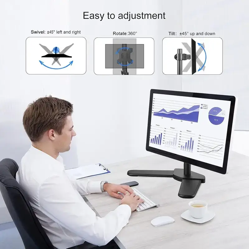 - Réglage complet : Inclinaison, rotation à 360° et réglage en hauteur pour un confort visuel optimal.